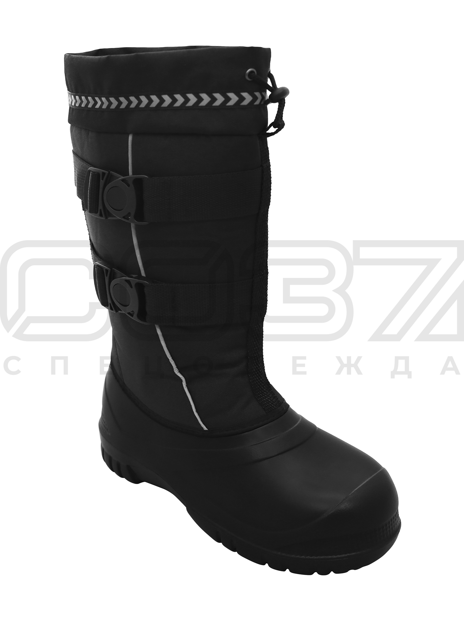 - Светоотражающий кант на боковой части сапога и рисунок СОП на манжете придают обуви дополнительные сигнальные свойства.